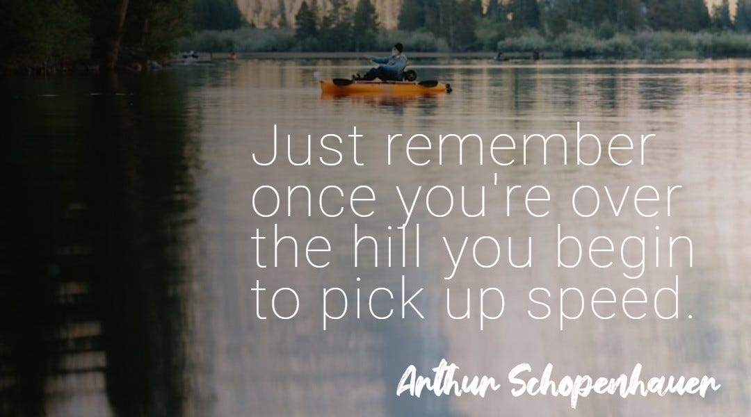 ICYMI: Just remember once you're over the hill you begin to pick up speed. | Arthur Schopenhauer Quotes